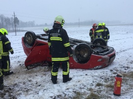 Am Vormittag des 16.02.2018 ereignete sich auf der Landesstraße 27, Oberthern Richtung Hollabrunn ein Verkehrsunfall. Eine Lenkerin kam mit ihrem