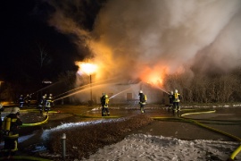 90 Feuerwehrmitglieder aus 7 verschiedenen Feuerwehren rückten bei minus 10 Grad Außentemperatur zum Löschen aus. Der erste Notruf ging kurz vor