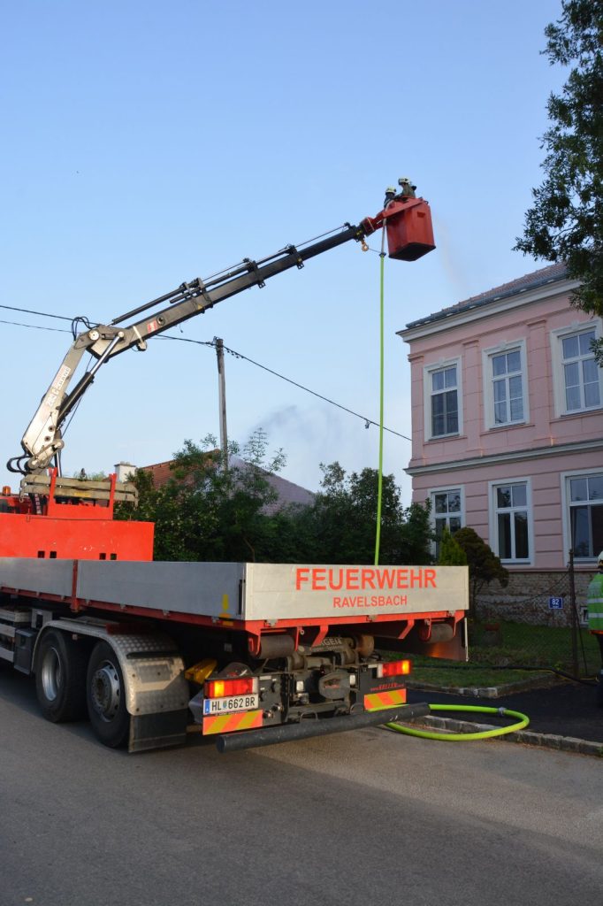 Übungsannahme:Dachstuhlbrand im Mehrparteinhaus „Alte Volksschule“ Keine Personen im Haus, Stiegenhaus teilweise verraucht und Dachstuhl im Vollbrand Eingesetzte Feuerwehren: FF