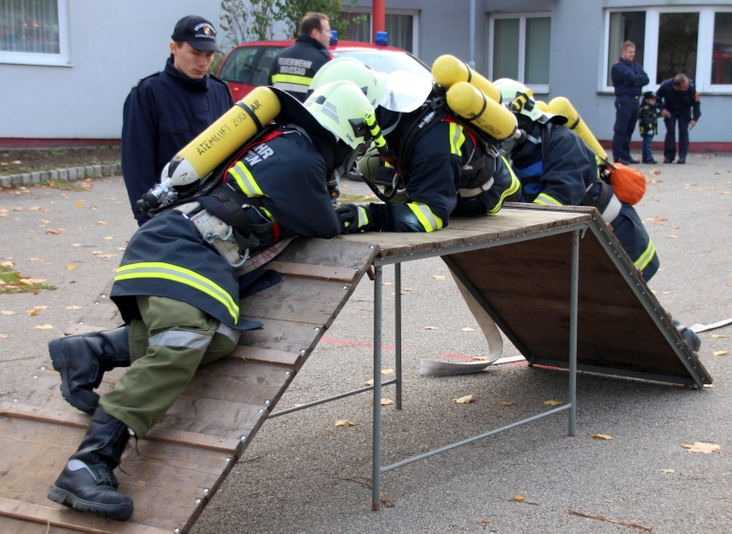 Ausrüsten mit Atemschutz – Personensuche in einem verrauchten Brandraum mit verschiedenen Schadstoffen – Brandbekämpfung über Hindernisbahn – Herstellen der Einsatzbereitschaft
