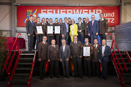 Am 22.05.2024 fand im Containerterminal des NÖ Landesfeuerwehrverbandes ein feierlicher Festakt statt, bei dem 152 Freiwillige Feuerwehren für ihr langjähriges
