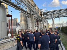 Rund 30 Mitglieder der Bezirksschadstoffgruppen Hollabrunn und Mistelbach, gemeinsam mit deren Bezikssachbearbeiter Schadstoff ABI Christian Holzer und EBR Gerhard Grum,