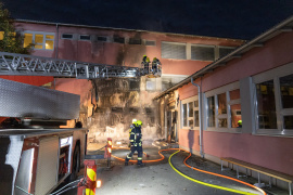 Schadstoffeinheit nach Brand in Mittelschule im Einsatz