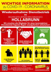 Das Bezirksfeuerwehrkommando Hollabrunn nimmt den Dienstbetrieb wieder auf. Anbei die aktuellen Covid-19-Maßnahmen für den Dienstbetrieb.