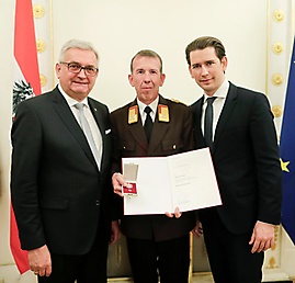 06.12.2018 – Große Auszeichnung für unseren Bezirksfeuerwehrkommandant. Landesfeuerwehrrat Alois Zaussinger erhielt für seine Verdienste das Bundes-Ehrenzeichen von Bundeskanzler Sebastian Kurz