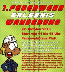 Die Feuerwehr Platt und das Bezirksfeuerwehrkommando Hollabrunn laden zur ersten Feuerwehr-Erlebnis-Wanderung am 22. Oktober 2016 nach Platt (bei Guntersdorf). Geladen