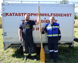 EOBI Baumgartner Günther von der Feuerwehr Auggenthal übergab beim „Fertigkeitsabzeichen Wasserdienst der Feuerwehrjugend“ neue Ruder an die Feuerwehrjugend des Bezirks.