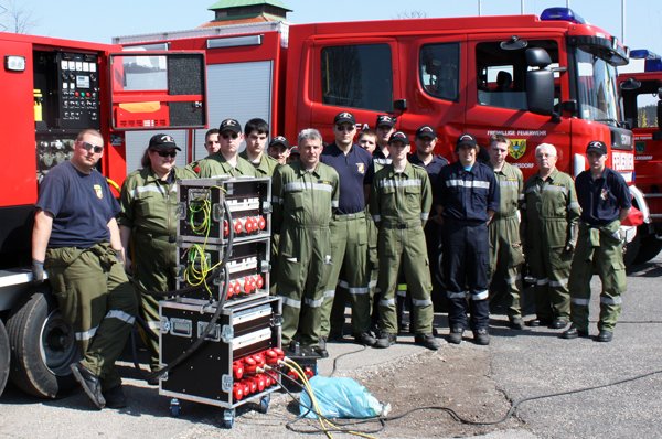 Am 4.4.2009 übten die 4 KHD-Züge des Bezirkes Hollabrunn. Im Stationsbetrieb wurde die Handhabung der Großgeräte zur Hochwasserbekämpfung geschult.