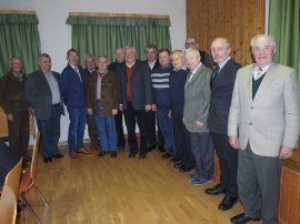Ehrenverwaltungsinspektor Franz Ungersböck (Bildmitte, roter Pullover) feierte mit den Ehrenfunktionären, der Feuerwehr Sitzendorf und dem Bezirksfeuerwehrkommando Hollabrunn seinen 70. Geburtstag