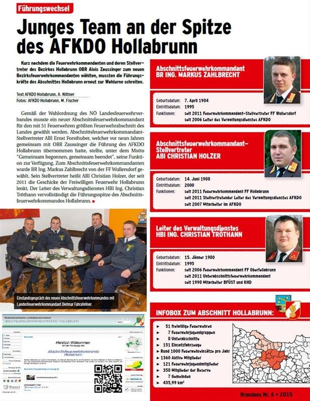 Auch Brandaus, die Zeitschrift des NÖ Landesfeuerwehrverbandes, berichtet in der aktuellen Ausgabe über das neue Abschnittsfeuerwehrkommando Hollabrunn.